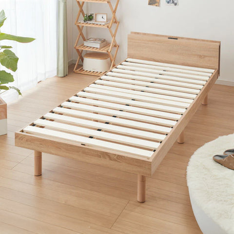 すのこベッド パイン材 シングル ベッドフレーム 宮付き 宮棚 棚付き ヘッドボード 2口コンセント付き 天然木 収納ベッド シングルベッド 木製ベッド 脚付きベッド 高さ調整 高さ調節