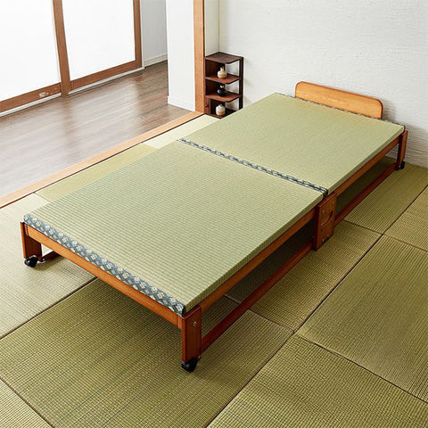 日本製 折りたたみ 畳 ベッド ひのき ロータイプ シングル 和風 木製 ヒノキ 檜 スノコ 天然木 コンパクト 省スペース キャスター付き 中居木工
