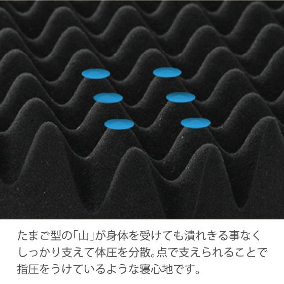 350ニュートンの硬質ウレタンを、たまご型にカットした高反発マットレスです。