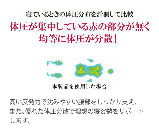 腰部分はもちろん、全身をしっかり支えてバランス良く体圧を分散、自然な寝姿勢と寝返りをサポートします。