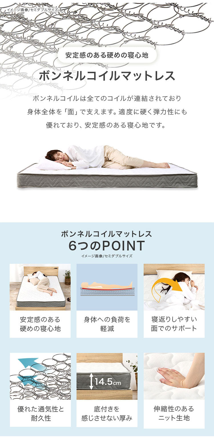 ベッド:ベッド:スチール・メラミン樹脂化粧繊維板、マットレス:ボンネルコイルポリエステル