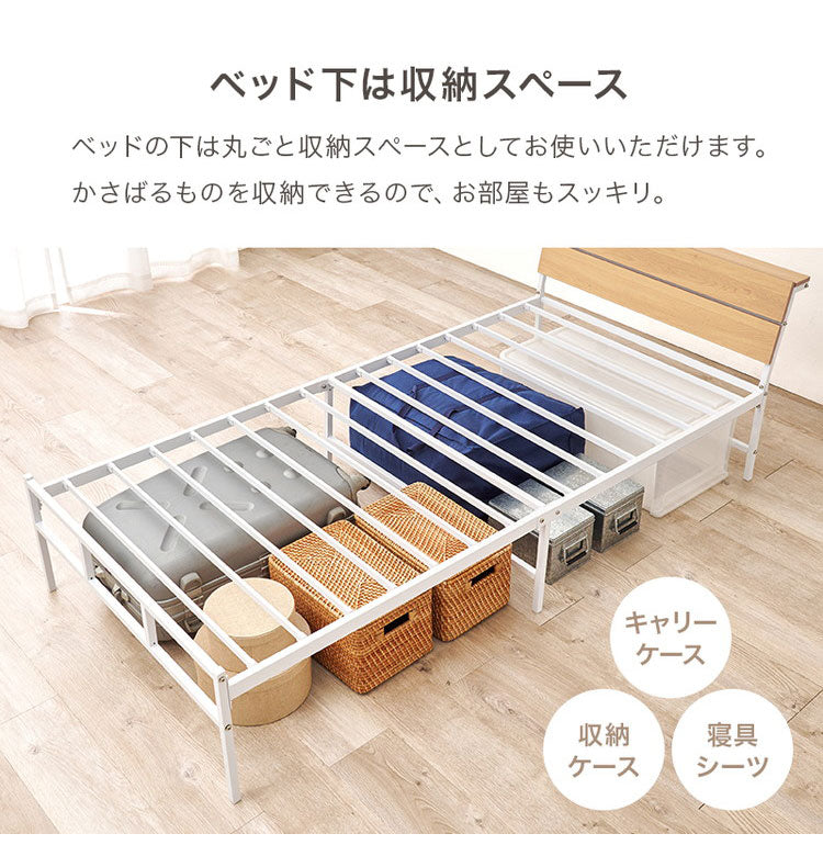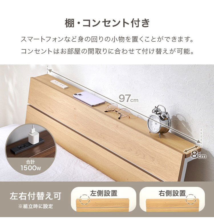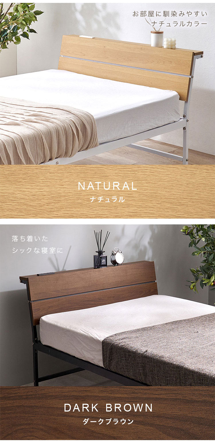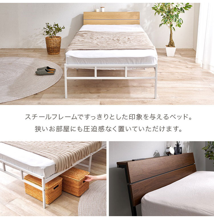 耐荷重300kg 頑丈スチールベッド シングル ボンネルコイルマットレス付き 棚コンセント付き ヘッドボード付き ベッドフレーム スチールベッド おしゃれ(代引不可)
