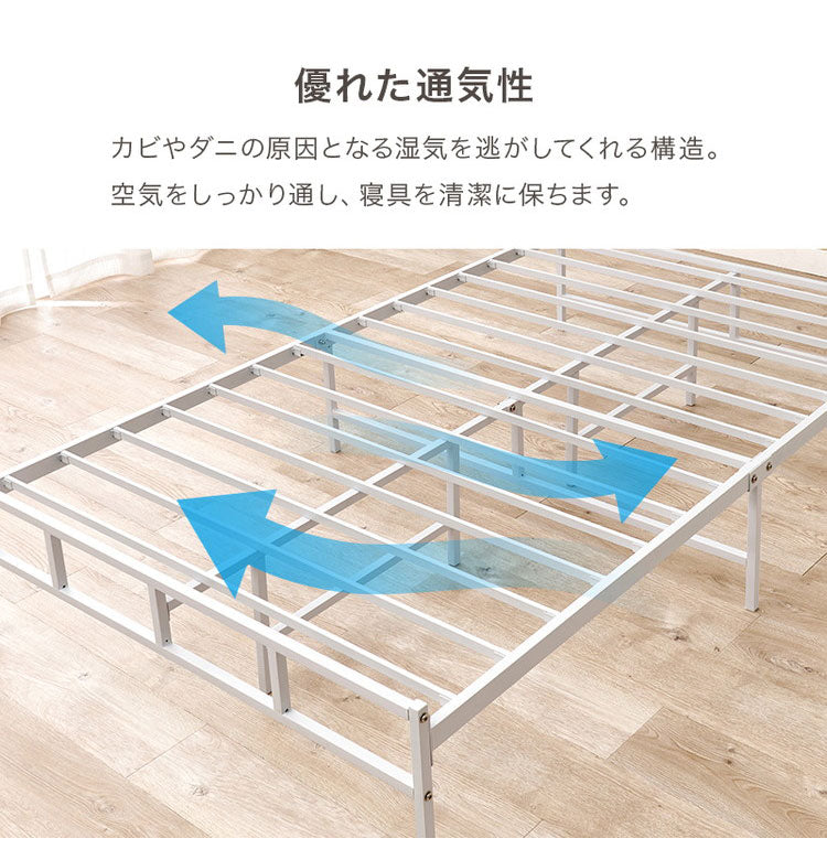 耐荷重300kg 頑丈スチールベッド セミダブル 棚コンセント付き ヘッドボード付き ベッドフレーム スチールベッド お掃除ロボット対応 ロボット掃除機対応 おしゃれ(代引不可)