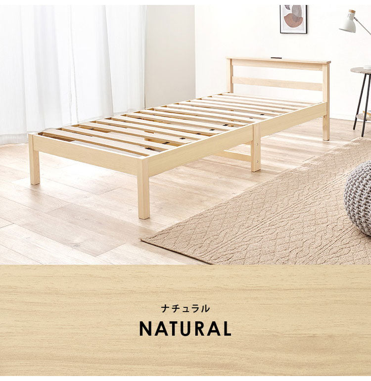 工具不要・簡単組立 すのこベッド シングル 耐荷重150kg 2口コンセント付き ベッドフレーム 木製 スノコ ベッド 寝具 寝具インテリア おしゃれ 北欧(代引不可)