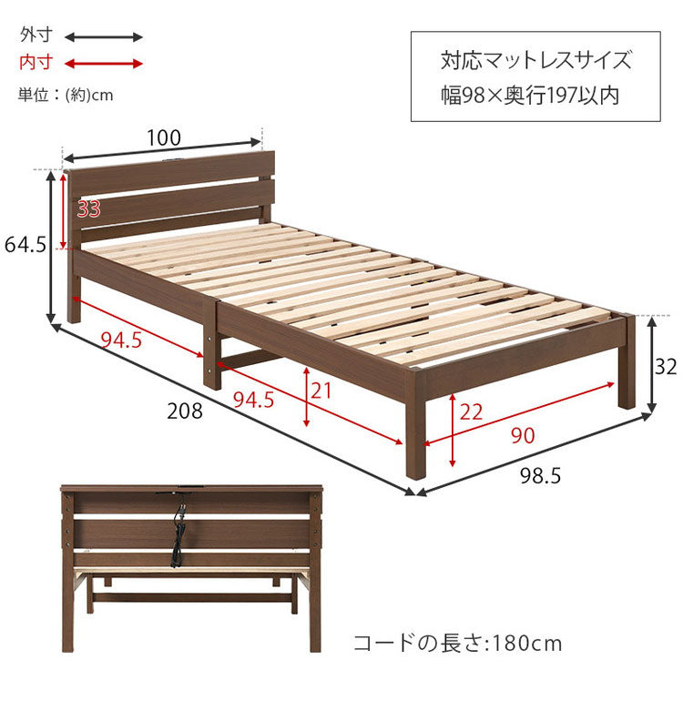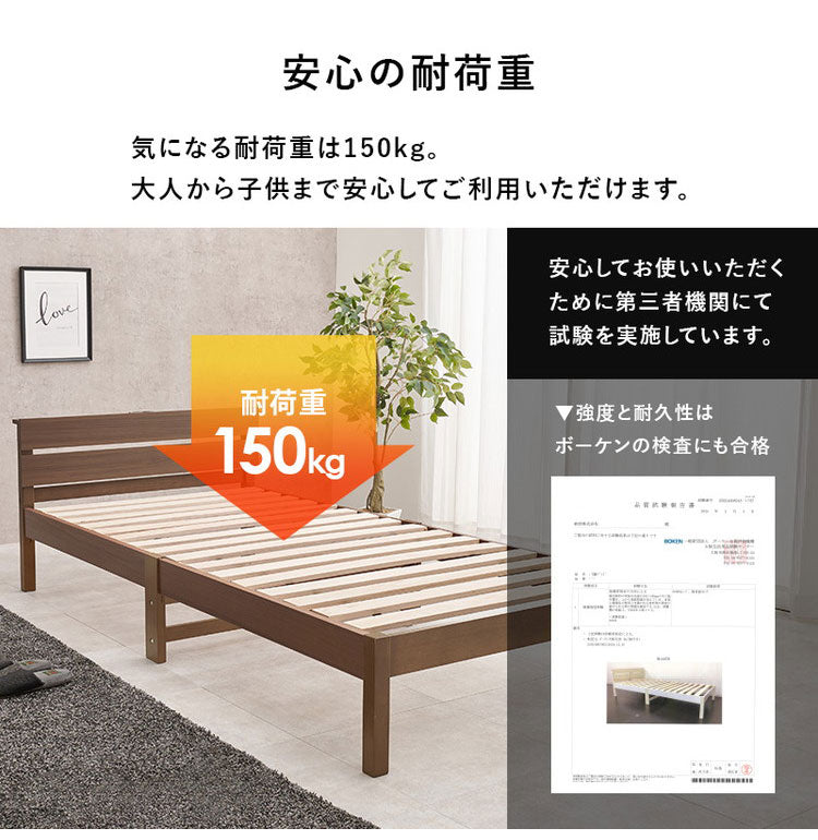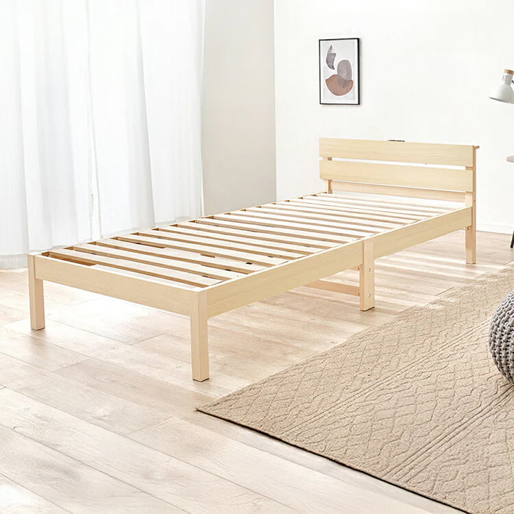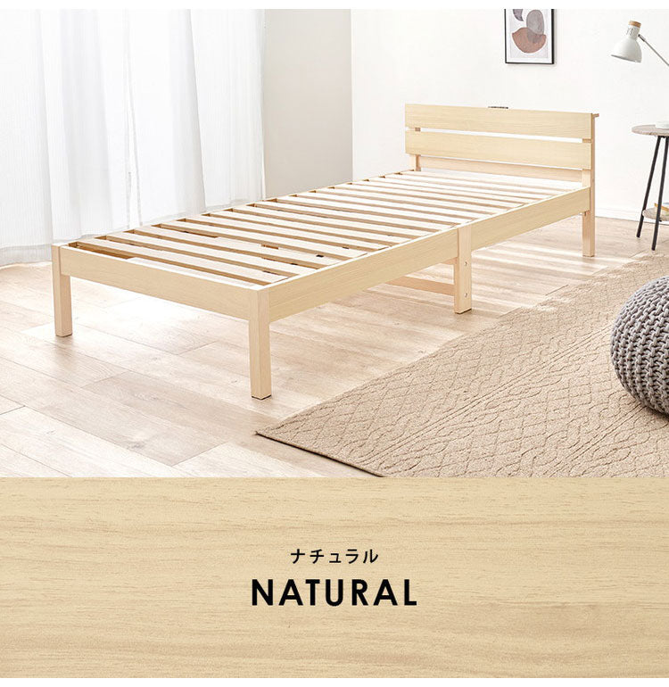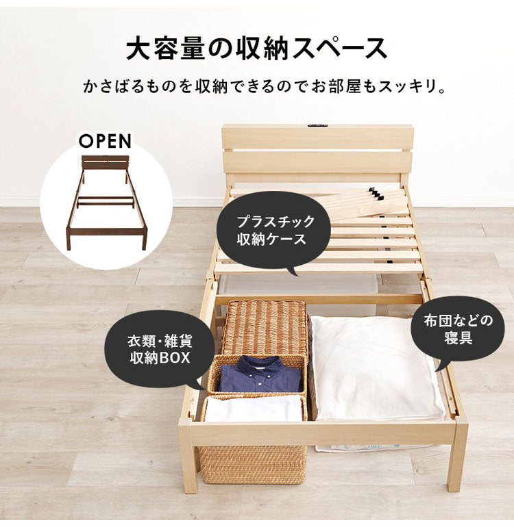 工具不要・簡単組立 すのこベッド シングル 耐荷重150kg 宮棚付き 2口コンセント付き ベッドフレーム 木製 スノコ ベッド 寝具 寝具インテリア おしゃれ 北欧(代引不可)