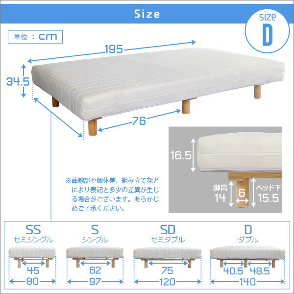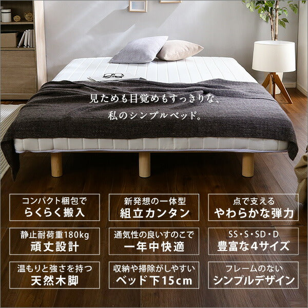 脚付きマットレス ベッド ダブル ポケットコイル マットレス付き 無地 おしゃれ 北欧 足つきマットレス マットレス コイル入り すのこベッド 天然木(代引不可)