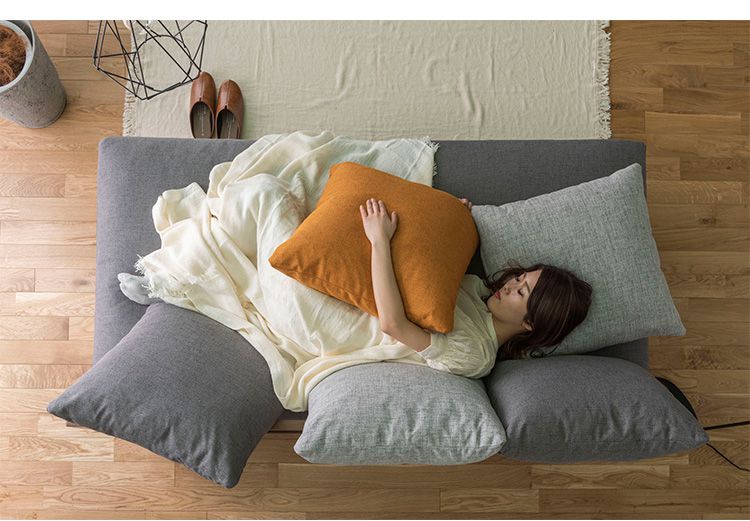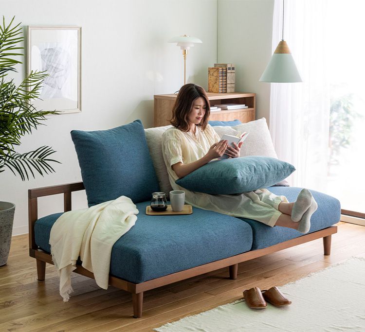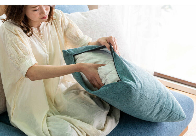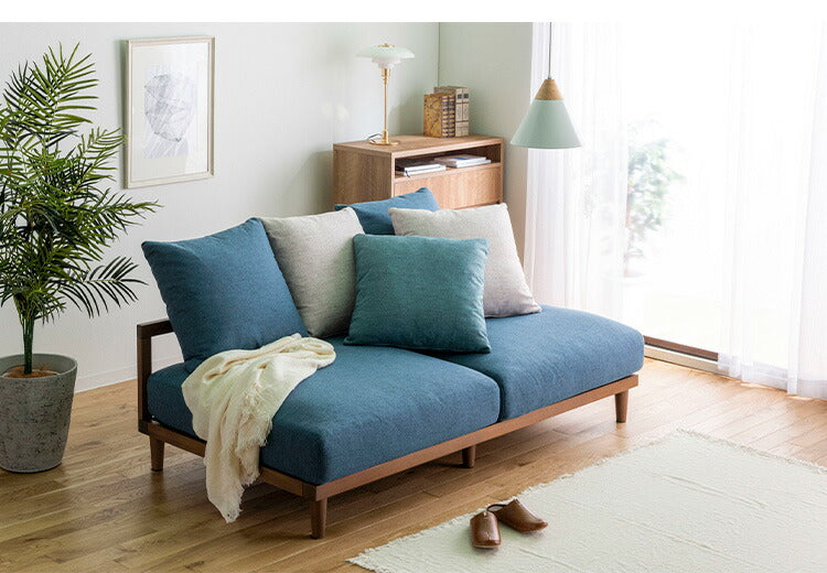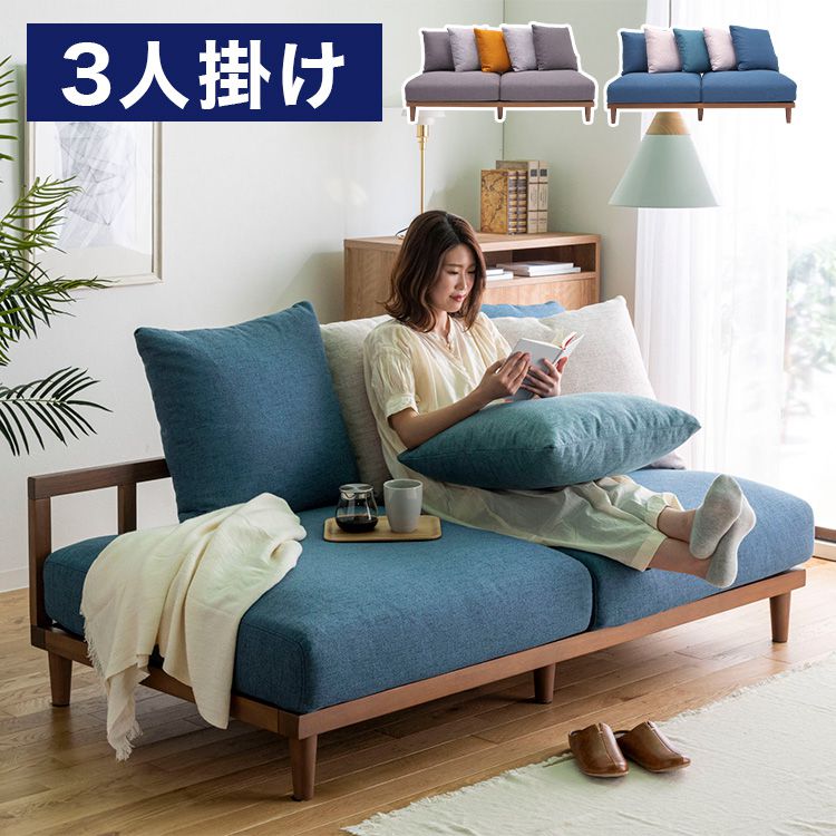 ソファ ソファベッド 幅180 3人掛け 天然木フレーム 北欧 ゆったり ファブリック 広々 ゆったり 羽毛 クッション ボリューム 柔らかい 大きい ブルー グレー(代引不可)