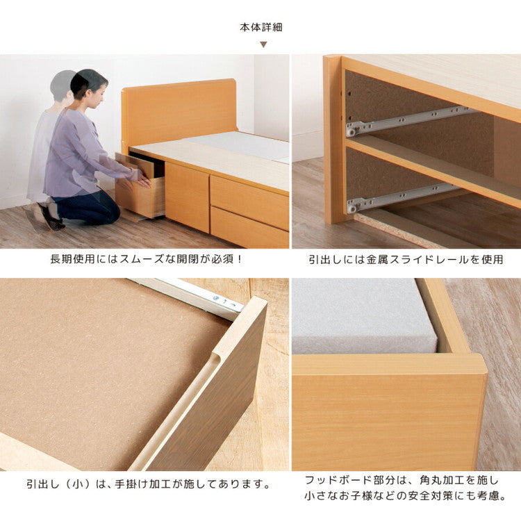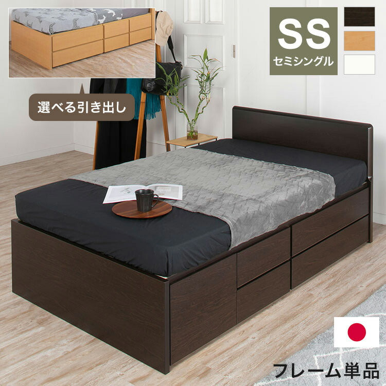 ベッド セミシングル 収納付き 日本製 フレームのみ 大容量 ベッドフレーム 木製 引き出し付き 収納ベッド 木製ベッド シンプル インテリア 北欧 おしゃれ かわいい(代引不可)