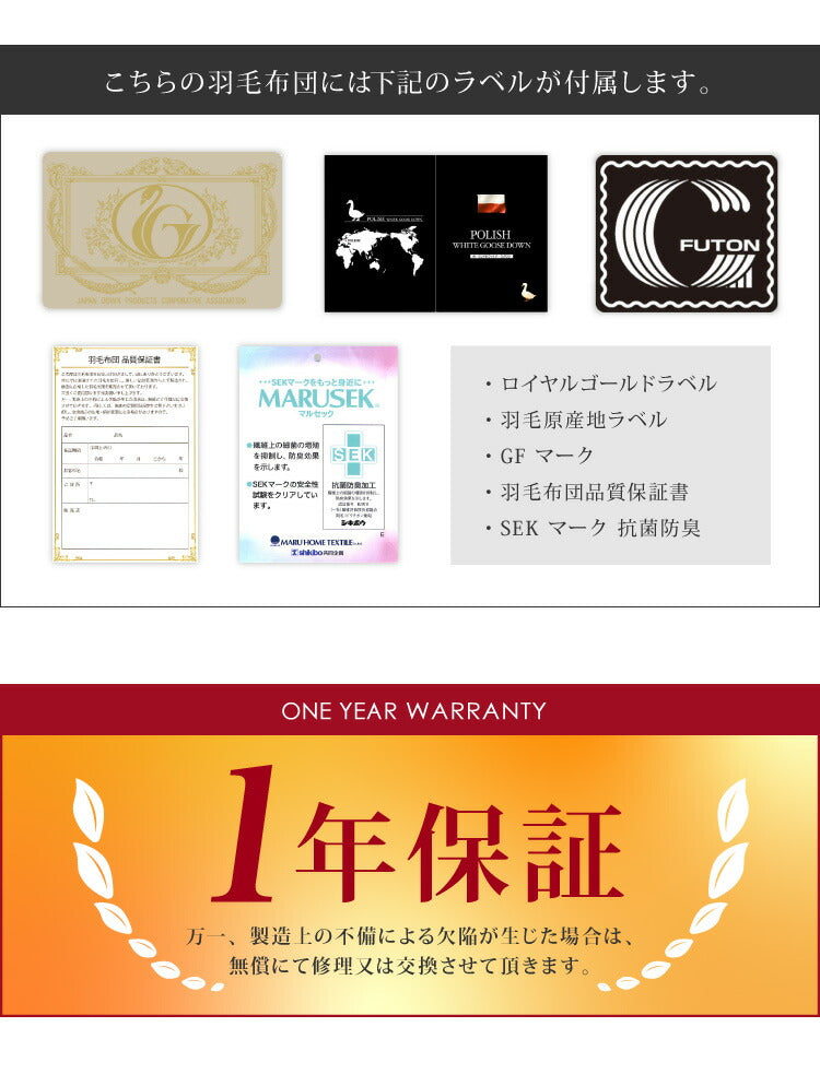 日本製 羽毛ふとん クイーン 1.8kg ロイヤルゴールドラベル ポーランド産ホワイトグースダウン 93% 400dp以上 立体キルト 抗菌 掛け布団 国産 羽毛 布団 ふとん 掛布団 あったか 冬(代引不可)