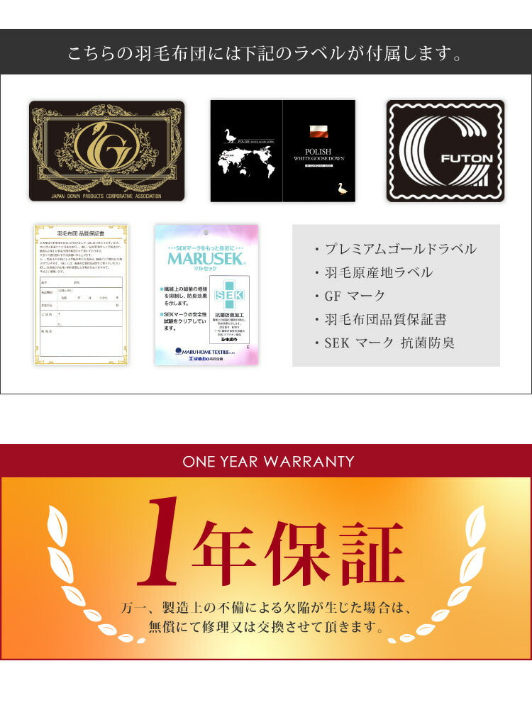 日本製 羽毛ふとん シングル 1.2kg 最高クラスプレミアムゴールドラベル ポーランド産ホワイトグースダウン 95% 440dp以上 立体キルト 抗菌 掛け布団 国産 羽毛 布団 ふとん 掛布団 あったか 冬(代引不可)