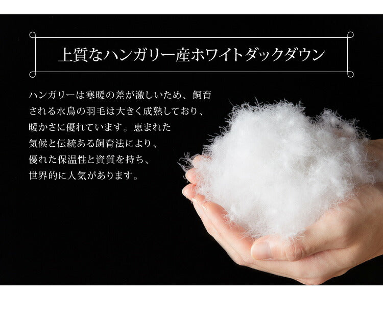 ※羽毛は天然素材のため、無臭ではございません。原毛は洗浄を十分に行っておりますが、開梱直後や温度・湿度等の環境等により臭いを感じる場合がございますので、開封直後には風通しの良い場所での十分な陰干し等をお勧めいたします。なお、天然羽毛の臭いのため人体に害はございませんのでご安心ください。