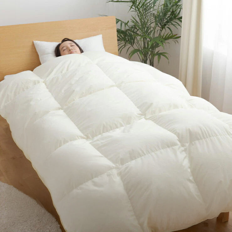 もう手放せない軽くてあったかな寝心地。厳選されたホワイトダックダウンを90%使用、ダウンパワー350以上、安心のエクセルゴールドラベル日本製羽毛布団