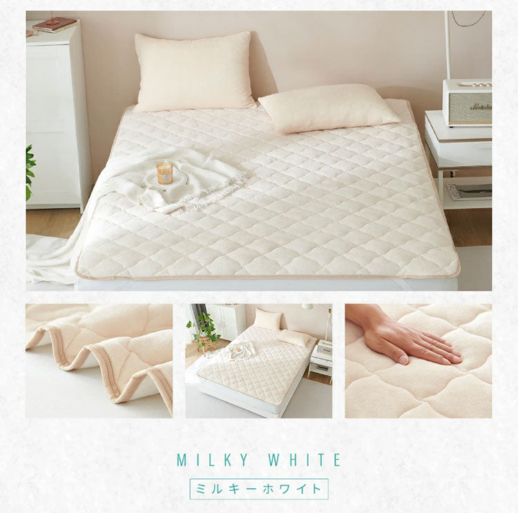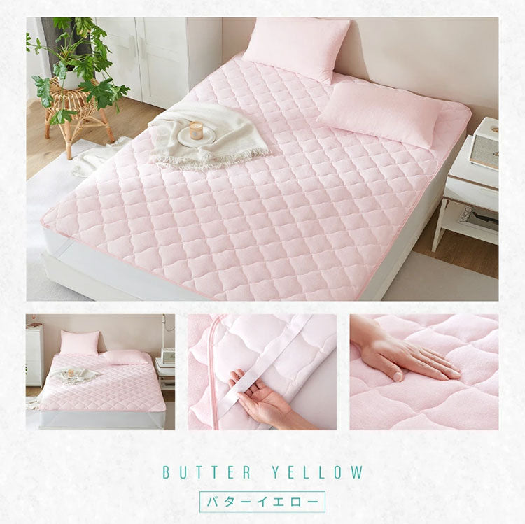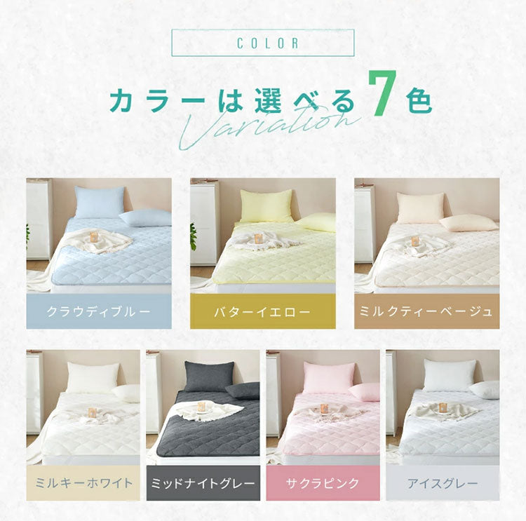 ゴムなし敷きパッドは滑り止め付きで、置くだけだから装着ラクラク。