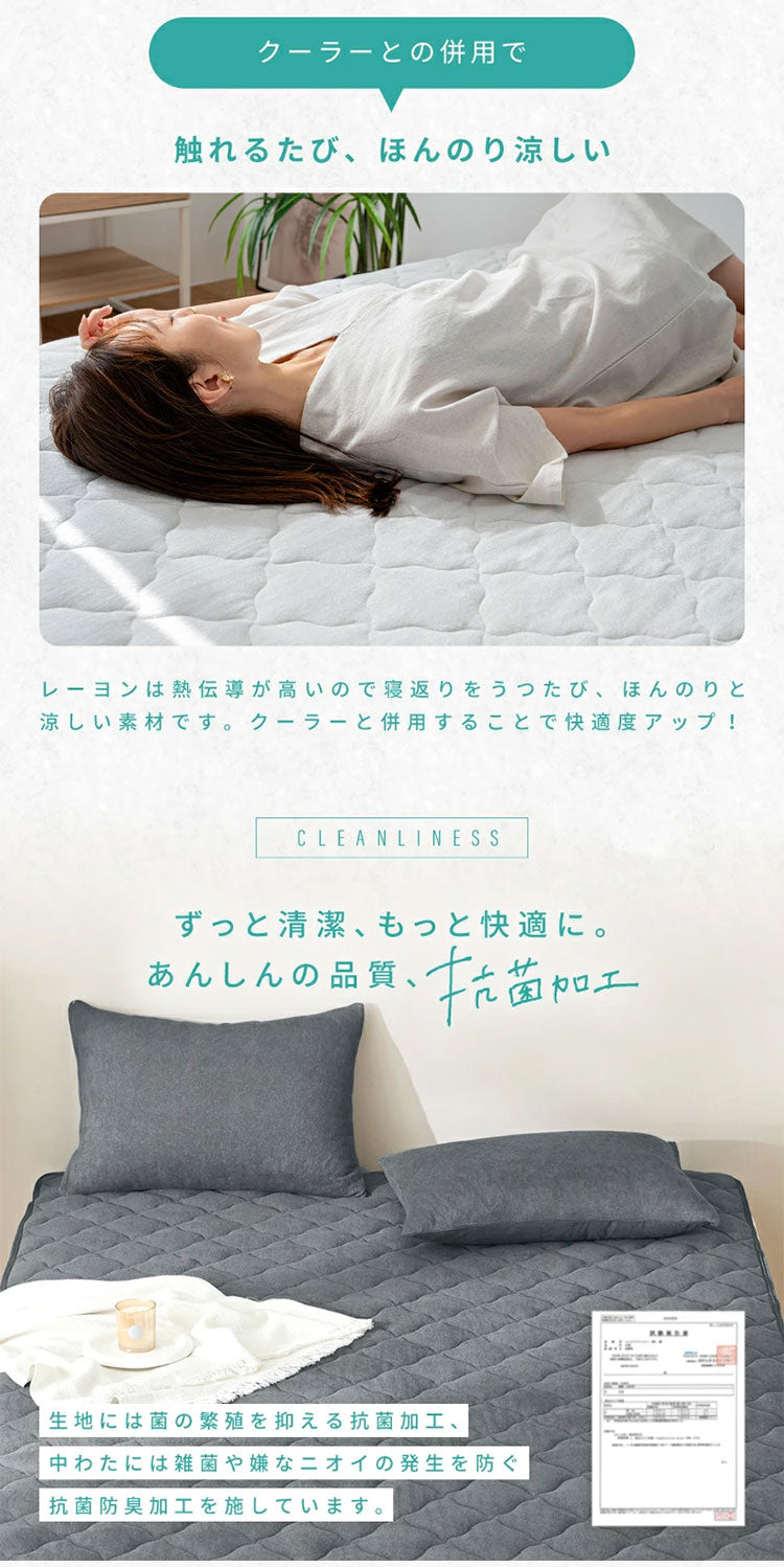 レーヨンは熱伝導が高いので寝返りをうつたび、ほんのりと涼しい素材です。