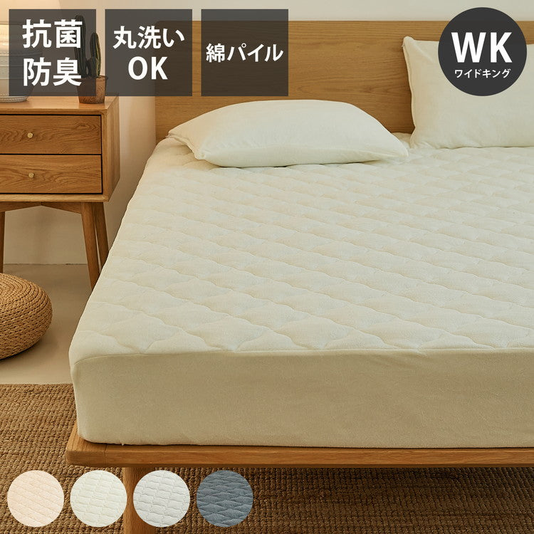 ボックスシーツ 綿100% ワイドキング 一体型ボックスシーツ 200×200×30cm さっぱり綿パイル タオル地 パイル おしゃれ かわいい インテリア 敷パッド 敷布団 ベッドパット ベッドシーツ マットレス(代引不可)