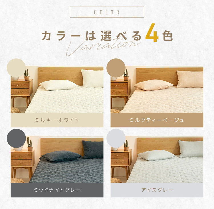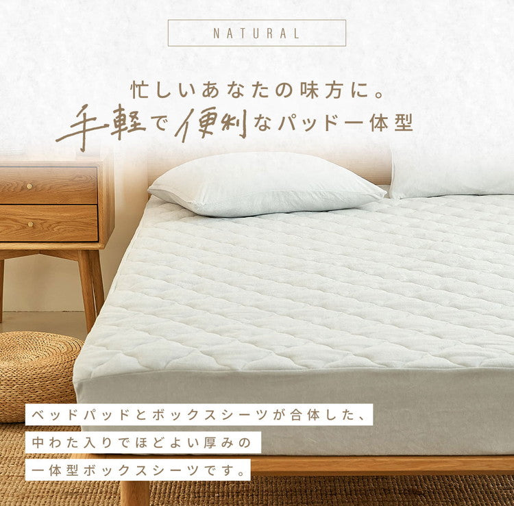 敷きパッドとベッドパッドが合体した 手軽で便利な一体型ボックスシーツ。