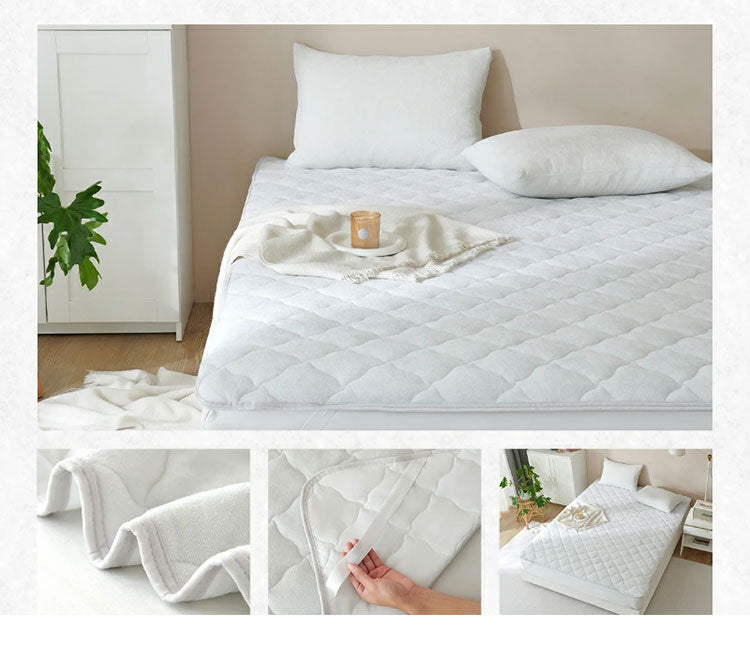 ゴムなし敷きパッドは滑り止め付きで、置くだけだから装着ラクラク。